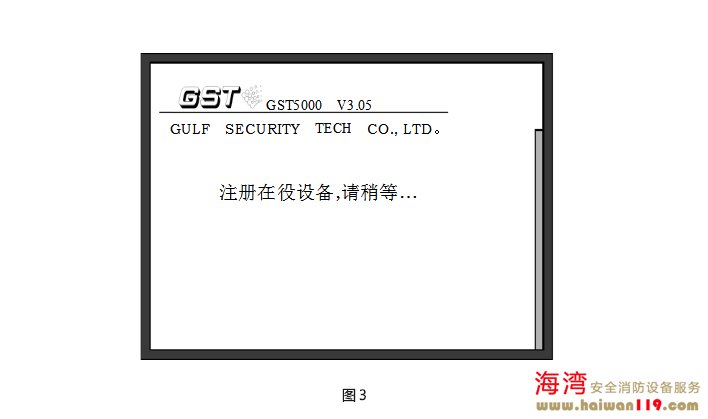 完成以上操作后,系統(tǒng)上電進行初始化(畫面顯示如圖1所示)。初始化完成后進入對運行記錄、隔離信息、聯(lián)動公式、聲光電源的自動檢查狀態(tài)(畫面顯示如圖2所示),自檢完畢,控制器對外接火災(zāi)顯示盤、探測器和模塊進行注冊(如圖3所示),并顯示注冊信息 (如圖4所示) 。至此,開機過程結(jié)束,系統(tǒng)進入正常監(jiān)控狀態(tài)。主機鍵盤上設(shè)有“自檢”鍵,按下此鍵后系統(tǒng)將進行和開機時相同的聲光及電源檢查。 關(guān)機過程按照與開機時相反的順序關(guān)掉各開關(guān)即可。要注意各個備電開關(guān)一定要關(guān)掉,否則,將有損壞電池的可能。