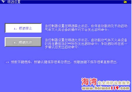 在設(shè)置里面進(jìn)入“6、噴灑設(shè)置”界面,輸入氣體操作密碼及更高級(jí)別密碼解鎖后,可將控制器設(shè)置為噴灑禁止或噴灑允許狀態(tài)。