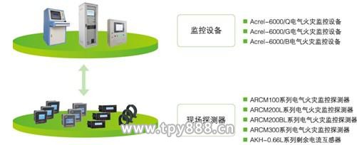 Acrel-6000電氣火災(zāi)監(jiān)控系統(tǒng)采用分層分布、開放式結(jié)構(gòu)設(shè)計,主要由監(jiān)控設(shè)備、監(jiān)控探測器等組成。監(jiān)控設(shè)備能接收來自電氣火災(zāi)監(jiān)控探測器的報警信號,發(fā)出聲光報警信號和控制信號,指示報警部位,記錄并保存報警信息,是系統(tǒng)的管理中心。監(jiān)控探測器探測被保護線路中的剩余電流、溫度等電氣火災(zāi)危險參數(shù),并可直接將本地采集的信號處理為數(shù)字信號,通過標(biāo)準(zhǔn)通訊協(xié)議進行傳輸。提高了信號傳輸過程中的抗干擾能力,提升了系統(tǒng)的可靠性指標(biāo)。